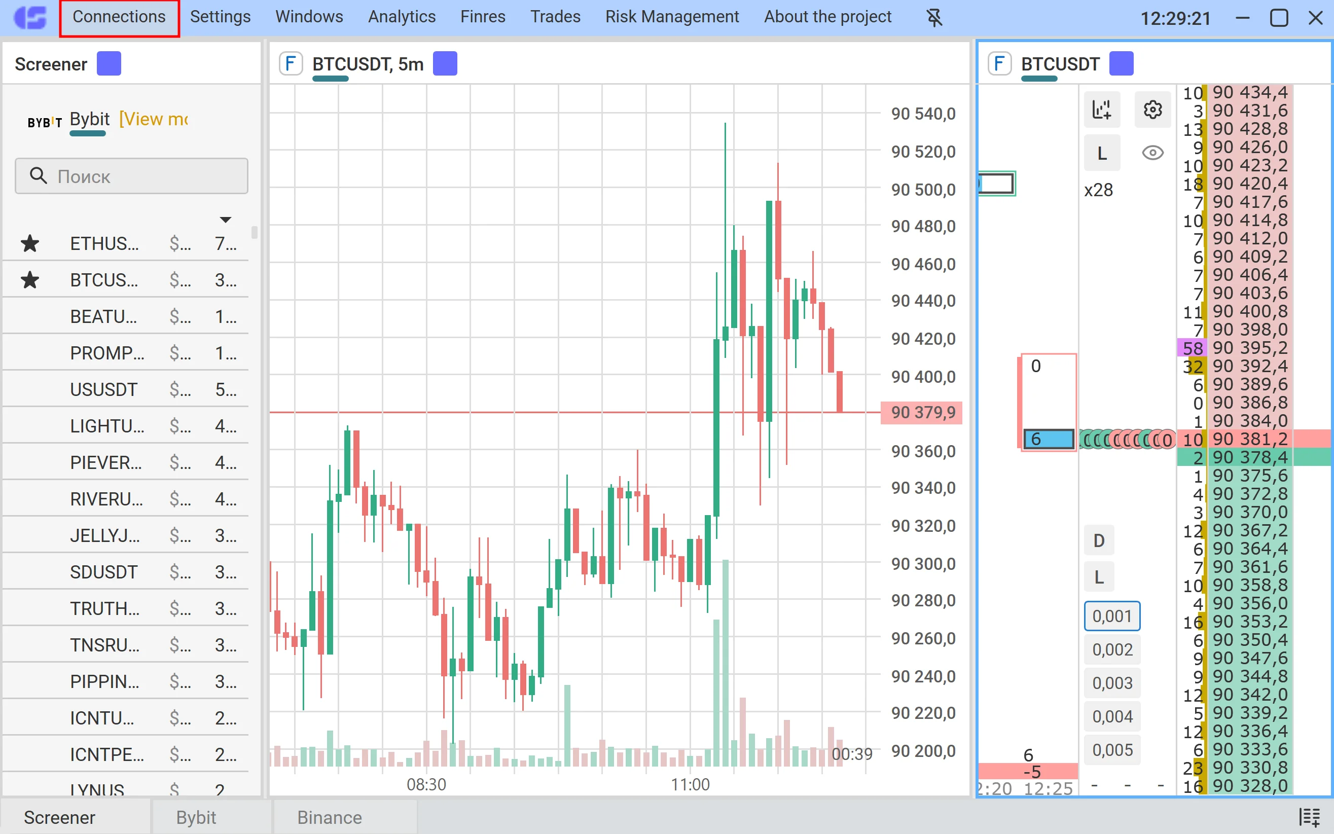 В окне Подключения из выпадающего списка справа выберите созданный вами ранее прокси. Подключение к бирже произойдет автоматически. Нажмите ОК, окно Подключения закроется.