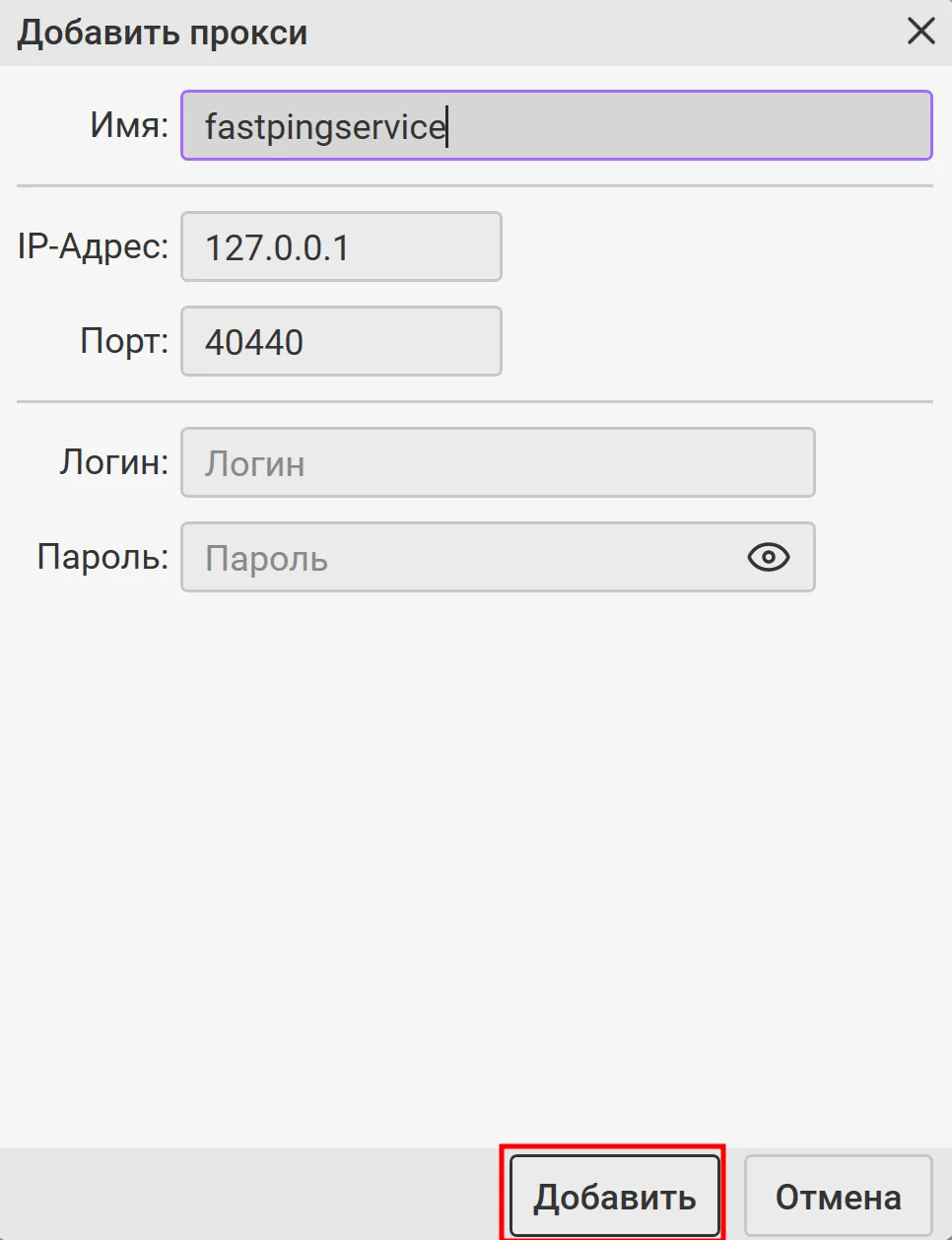 Остальные поля оставьте пустыми. Нажмите Добавить, а затем ОК