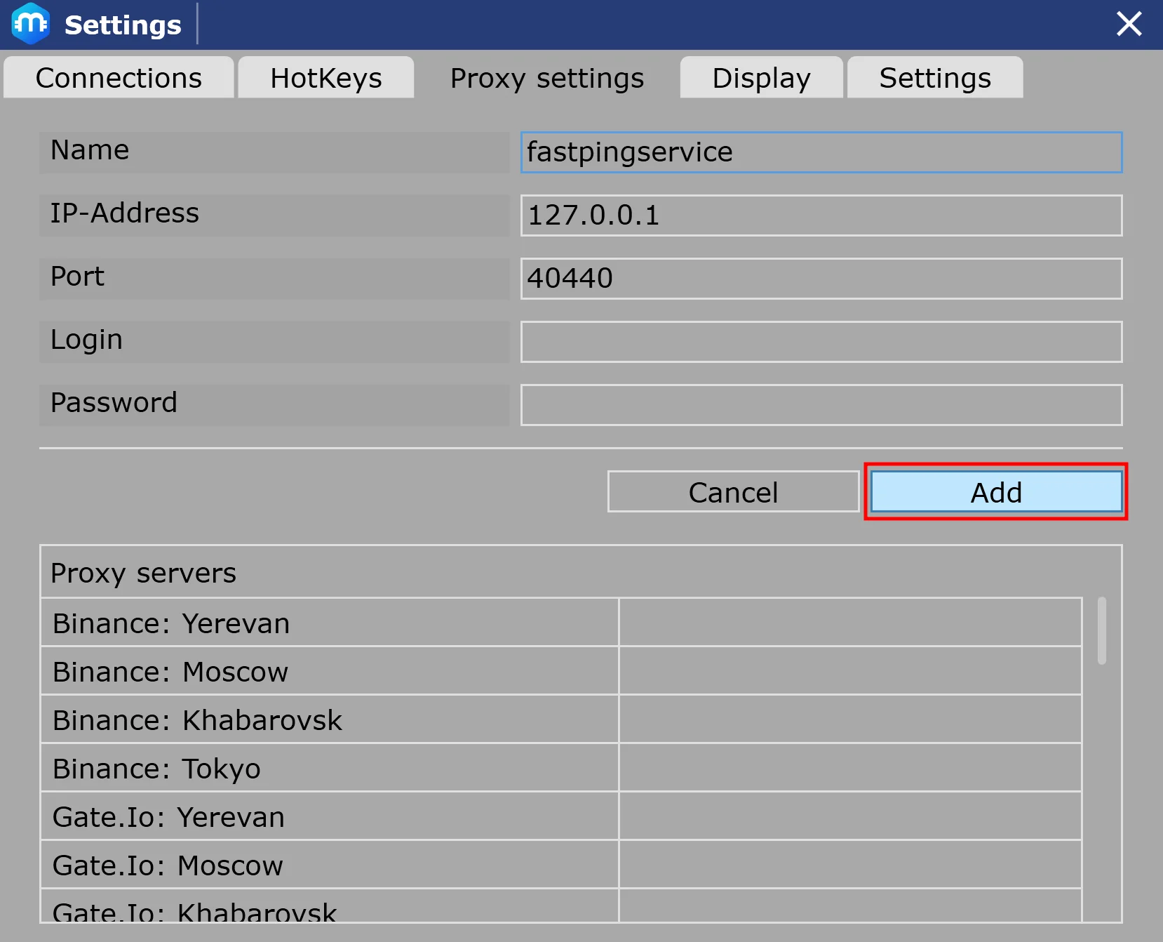 Остальные поля оставьте пустыми. Нажмите Добавить. В списке Ваши прокси сервера появится созданный вами прокси.