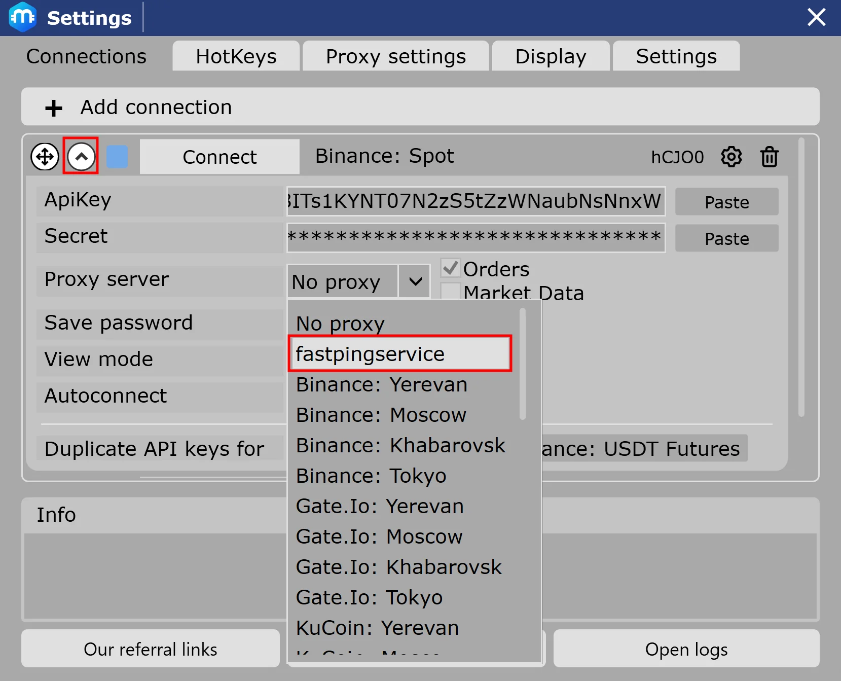 MetaScalp Настройка терминала для работы c Fast Ping Service