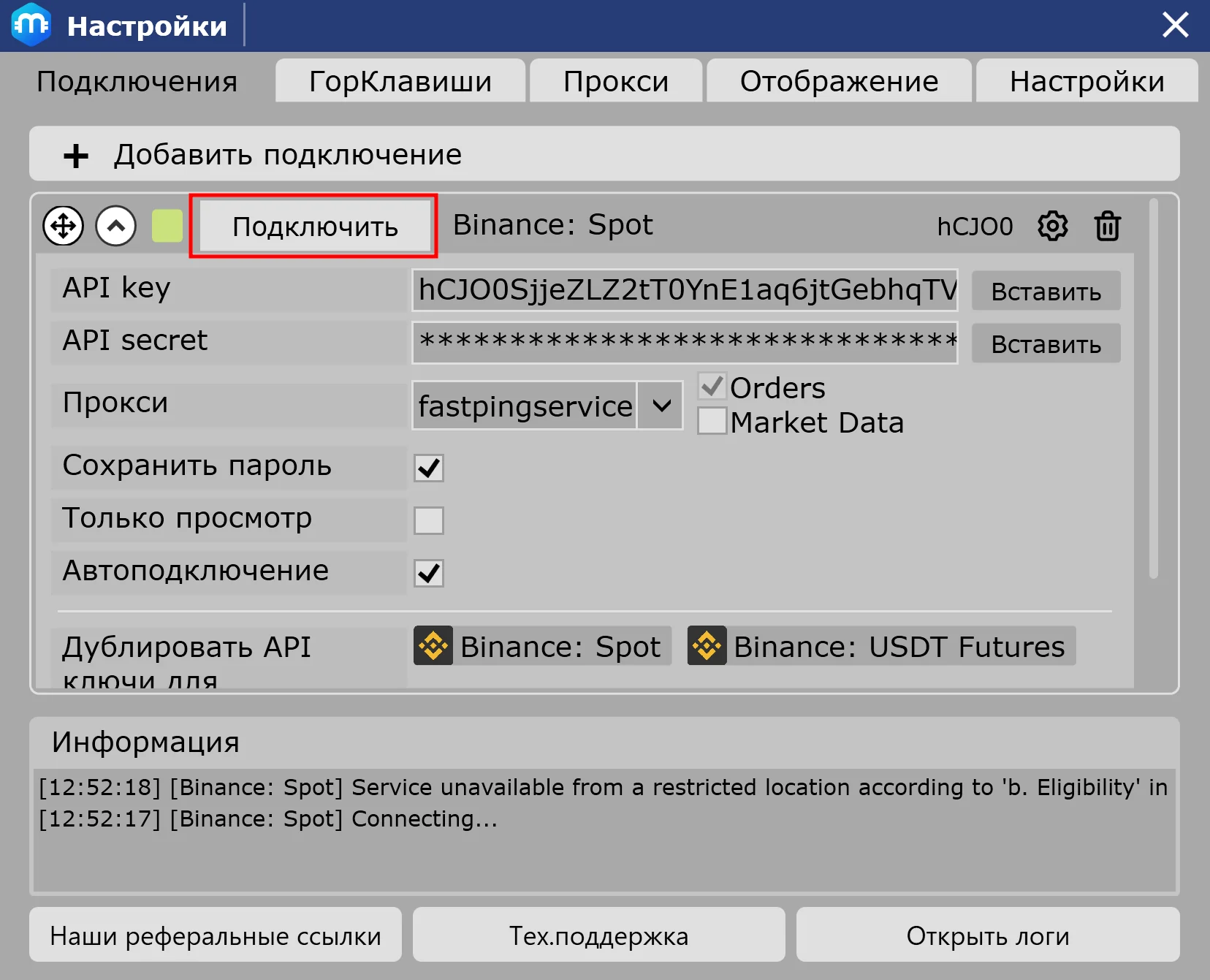 ДЛЯ КОРРЕКТНОЙ РАБОТЫ СЕРВИСА МОЖЕТ ПОТРЕБОВАТЬСЯ УСТАНОВКА НЕОГРАНИЧЕННОГО ДОСТУПА В НАСТРОЙКАХ API-КЛЮЧЕЙ НА СТОРОНЕ БИРЖИ. КАК ЭТО СДЕЛАТЬ РАССКАЗЫВАЕМ НА ПРИМЕРЕ BINANCE