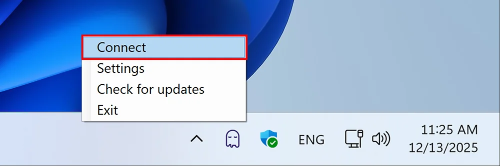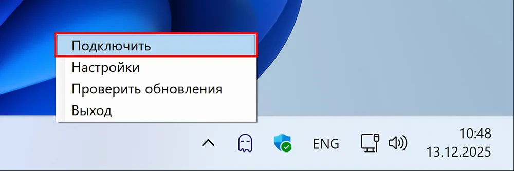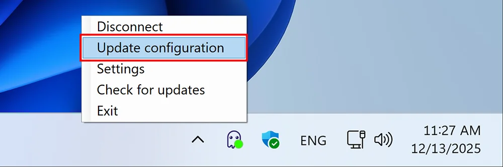 Если подключение сейчас активно — обновите конфигурацию, выбрав в контекстном меню пункт Обновить конфигурацию: